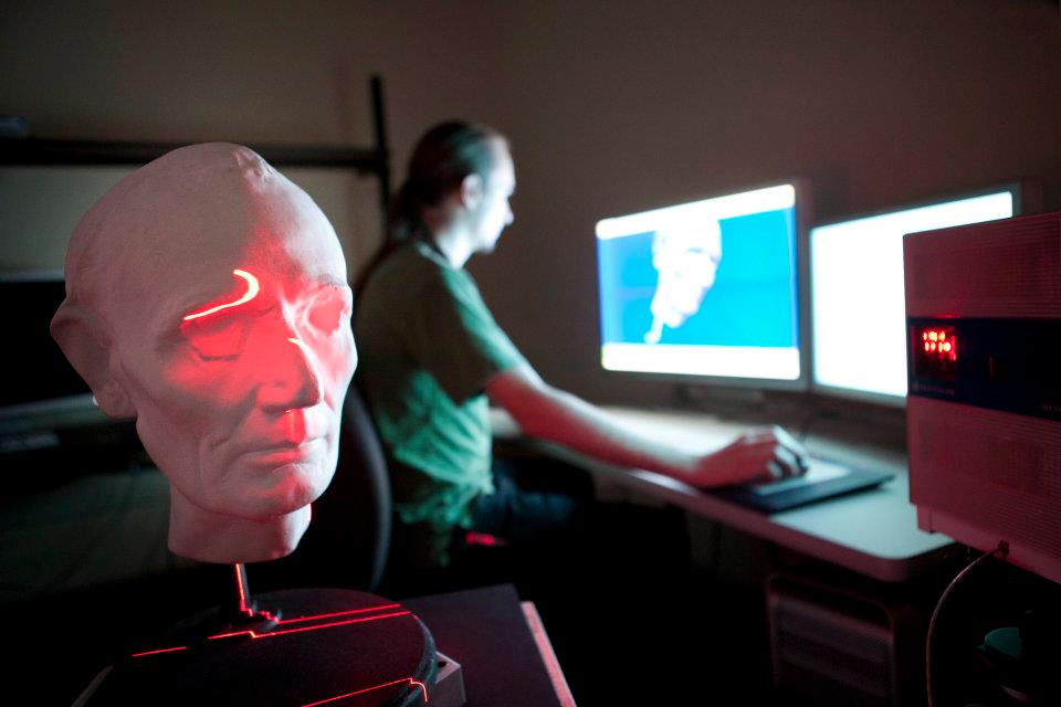 The department also has a 3D Scanner available to students, which is really cool. This device uses lasers to scan any 3D object and convert it into a digital model that can be edited with computer software or printed as a plastic model. 3D printers are great for fabricating parts and scanning faces to create digital models. Prof. Oakley has a growing collection of Lincoln heads thanks to this method.