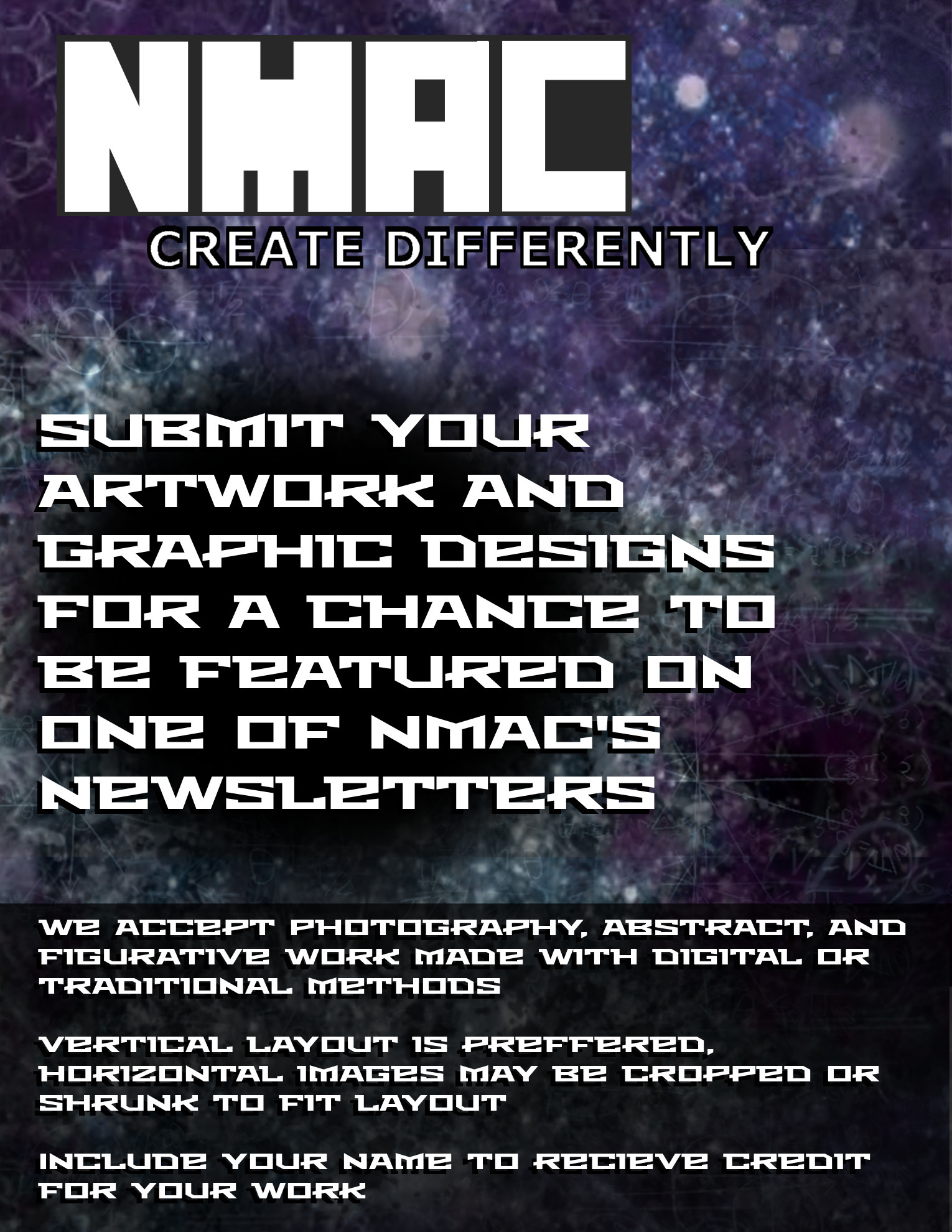 It has been suggested to try and make the newsletters less about UNCA or the New Media Arts Council and to instead include more relevant job opportunities, internships, and relevant design tips for students. Miscellaneous links to featured designers or artists, music, typography, videos, trivia, inspirational quotes, industry news, or events might be cool too.