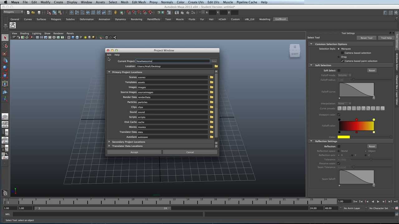 This is the first thing you should do when you open Maya. Setting a project ensures all related files get put into the same Maya folder. Use Increment and Save to save multiple backup files as you progress.