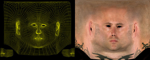 That creepy squashed face thing is the work of the UV Texture Editor. In order to get textures to appear without distortion on a 3d surface, it requires mapping the surface area geometry and flattening it on a 2D plane. Exporting a UV snapshot will allow you to use Photoshop to paint directly on the map and import it back into Maya. Usually you will have to select faces individually and then join the UVs into distinct shapes that will be easier to work with in Photoshop. It's a tedious process, but it is essential for customizing character models and complex models.