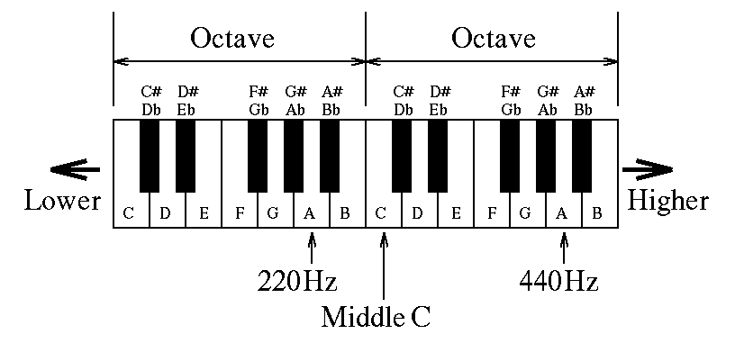 Notes have alternate versions where a note is lowered or raised by one. A flat note is one key lower, while a sharp note is one key higher than normal.