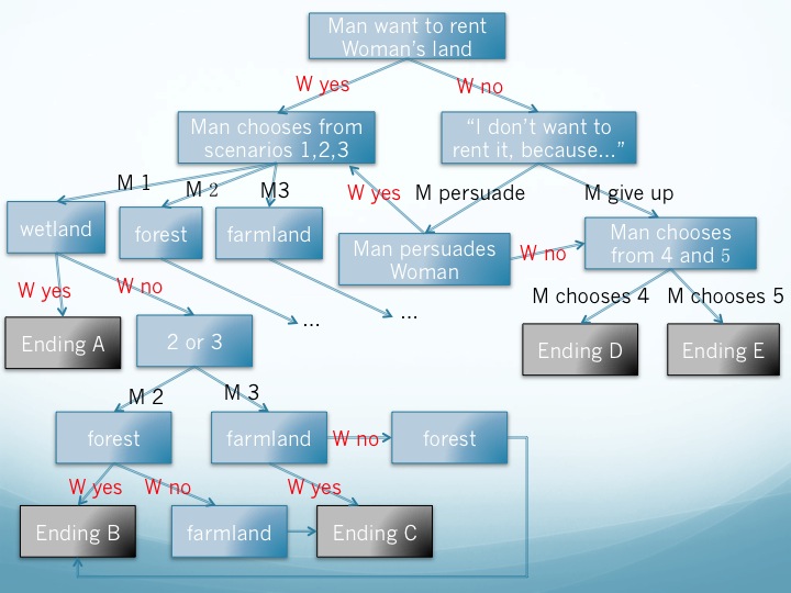 Whether designing for linear missions, open-world, or multiplayer, the player has to be able to make decisions that affect the outcome of the gameplay, but they also need to be lead forward in a logical progression. Narratives and mission objectives tend to be used to guide the player to the next area, but side-exploration is also encouraged. It is generally a good idea to try to make areas visually distinct from other sections of the game to avoid repetitive gameplay.