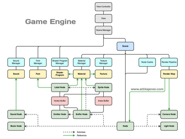 If you really want to learn the technical details about this subject, Game Architecture by Jason Gregory is the book to read. Game Architecture is essentially the way everything is organized into tiers and nodes that are then linked together in a very complicated manner to produce a game on screen. Unity and Unreal also have a number of introductory tutorials covering the subject.