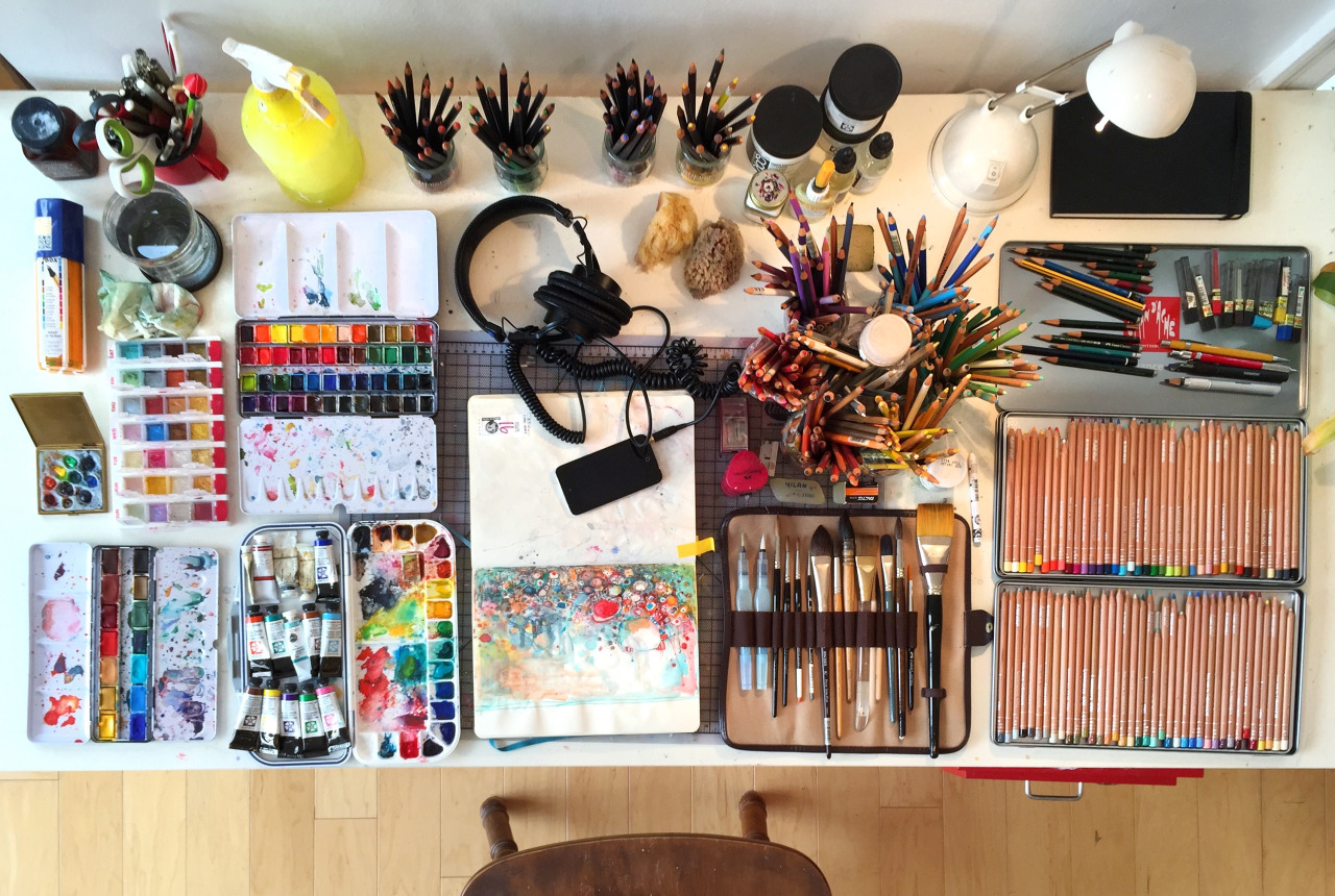 The medium you use is up to personal preference, but it is recommended to practice with a multitude of styles. Pencils are the standard, but there are also special drawing pencils that vary in hardness, charcoal, or watercolor pencils that can produce different effects. Pens, brushpens, and markers create bold lines. Pastels, watercolors, paints, and colored pencils