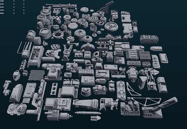 A trick used by model makers to create lots of detail without actually having to sculpt it all by hand. Kitbashing involves going to a toy store, buying a bunch of different plastic model kits, and then gluing all those parts together. Kitbashing tends to work best with mechanical vehicles, spaceships, vehicles, environments, or buildings. 3D printed parts can be combined with kitbashed components. Today, digital artists can use similar modular 3D assets to help add fine details wthout tons of extra work.