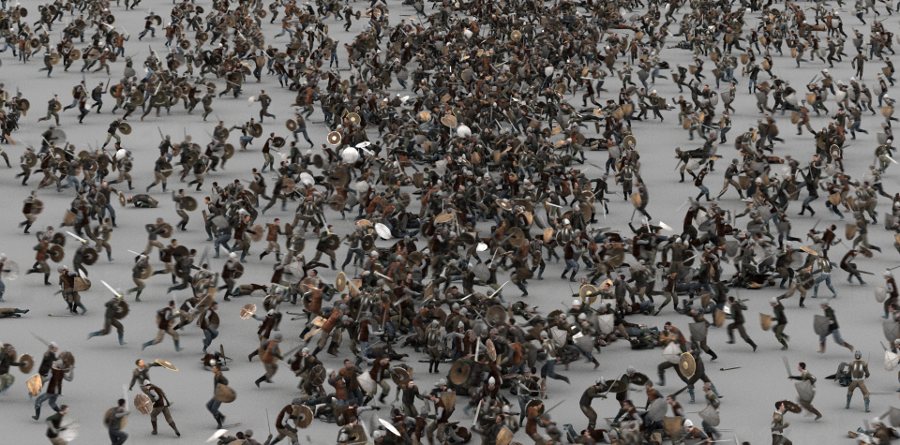 Most productions prefer to use digital crowds rather than cast thousands of extras. Creating large crowds typically involves copying and pasting live footage of multiple takes of small groups to be composited together in one scene. The disadvantage of using digital crowds is that they take forever to render, are limited to very basic animation cycles, and can't perform complex actions responding to external stimuli. WETA Digital's Massive engine was one of the first software programs to successfully program huge numbers of A.I. agents to respond to group movements or react individually. Improvements in A.I. algorithms and software will likely continue to increase the capability to automate large crowds.
